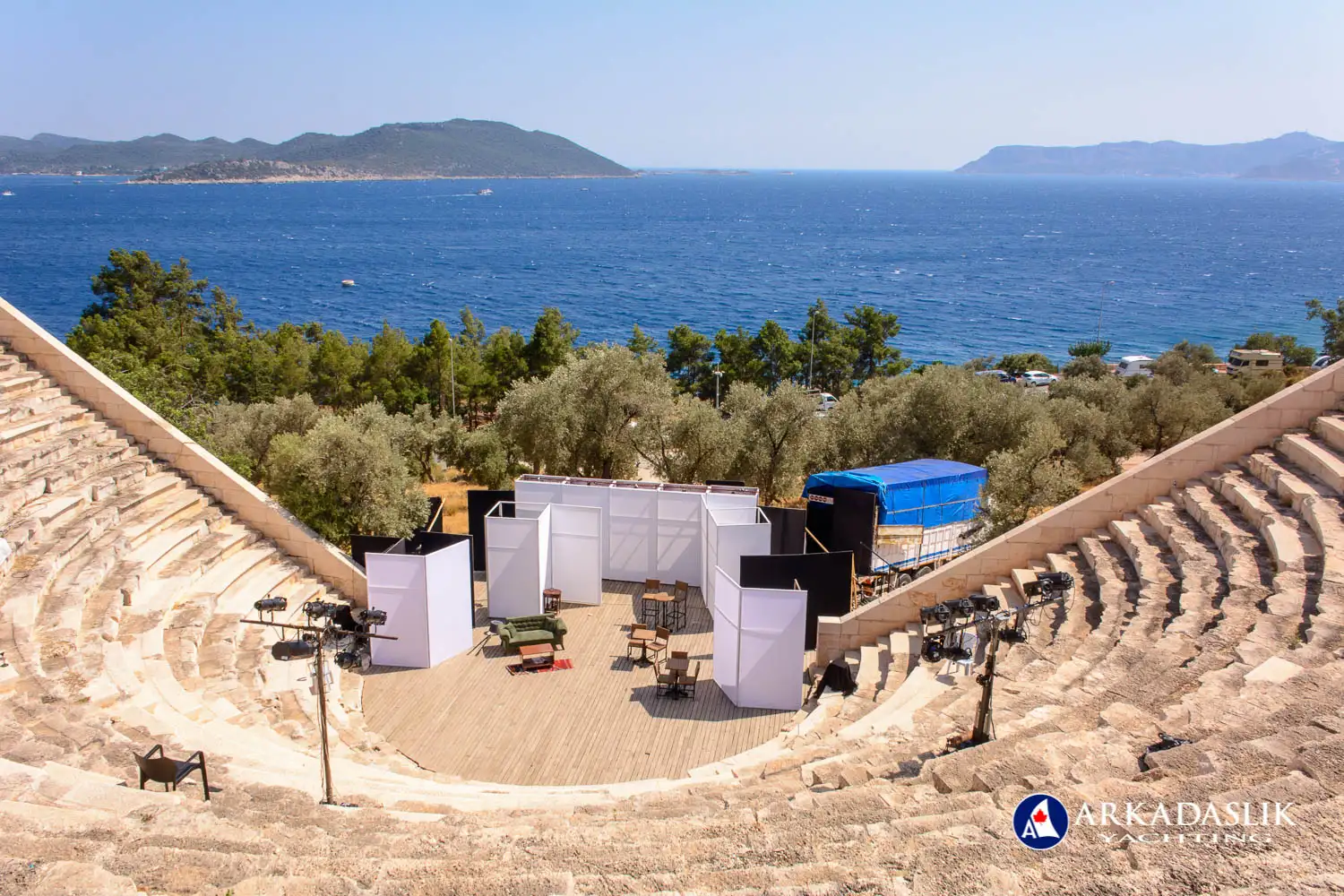 Lunch was served after everyone returned to the boat and we headed to Üçağız, passing over the Sunken City of Kekova on our way to fill the boat's freshwater tanks with water. The heat in the tiny settlement was oppressive, so we left once the tanks were full, heading to the nearby castle village of Simena.